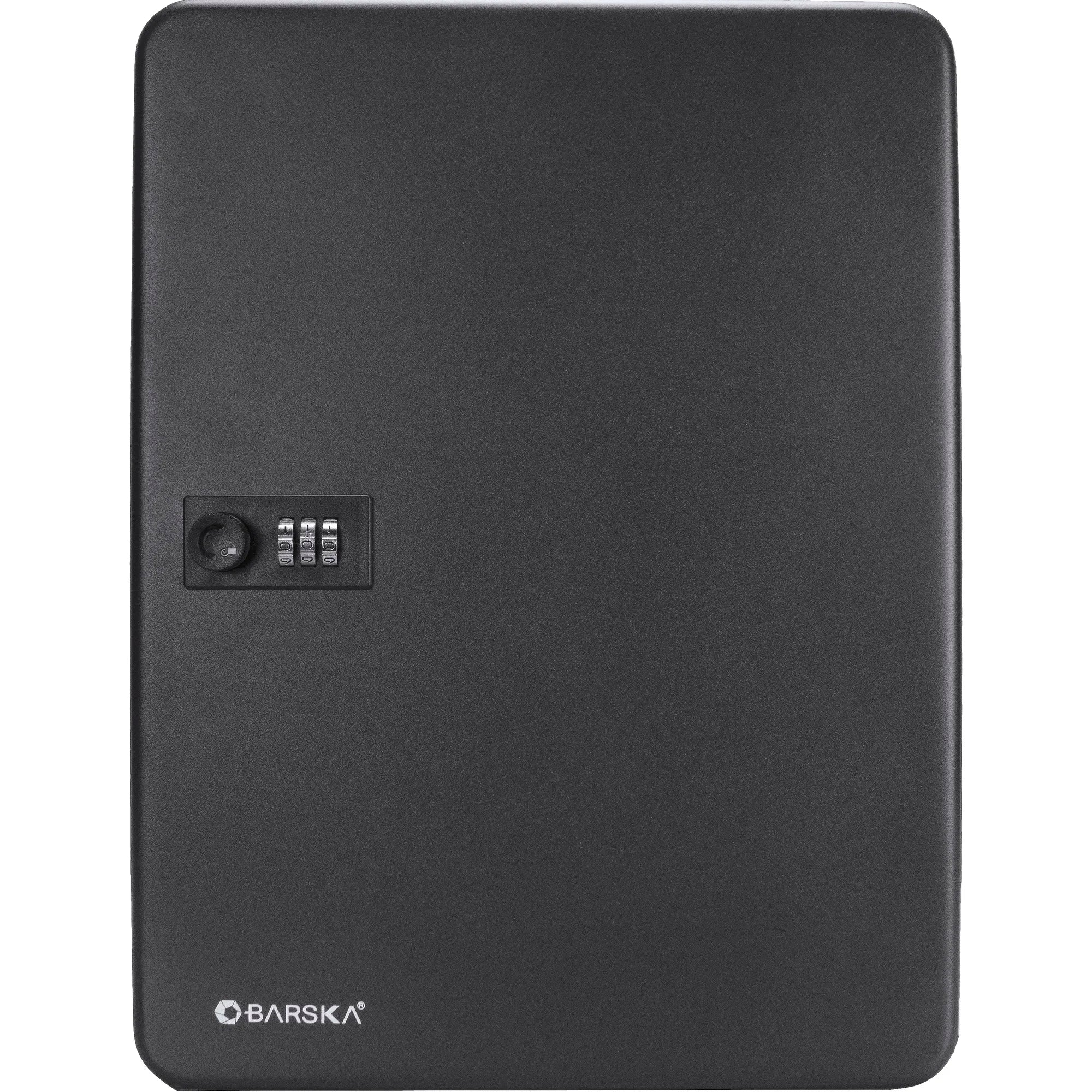 The 48 Capacity Adjustable Cabinet with Combination Lock by Barska features adjustable hook rack cabinet that makes key organization easy and convenient. Inside the cabinet, are three rows of removable color-coded and numbered hooks, each of which are easy to organized and install. This Adjustable Lock Box with Combination Lock has pre-drilled anchor holes and including mounting hardware for quick installation. The safe’s exterior is constructed of 0.8mm solid steel and finished with a black coating. This lock box is ideal for home, office, apartment complex, rental management companies, car lots, body shops, and many more. All Barska cabinets are backed by a 1 Year Limited Warranty.