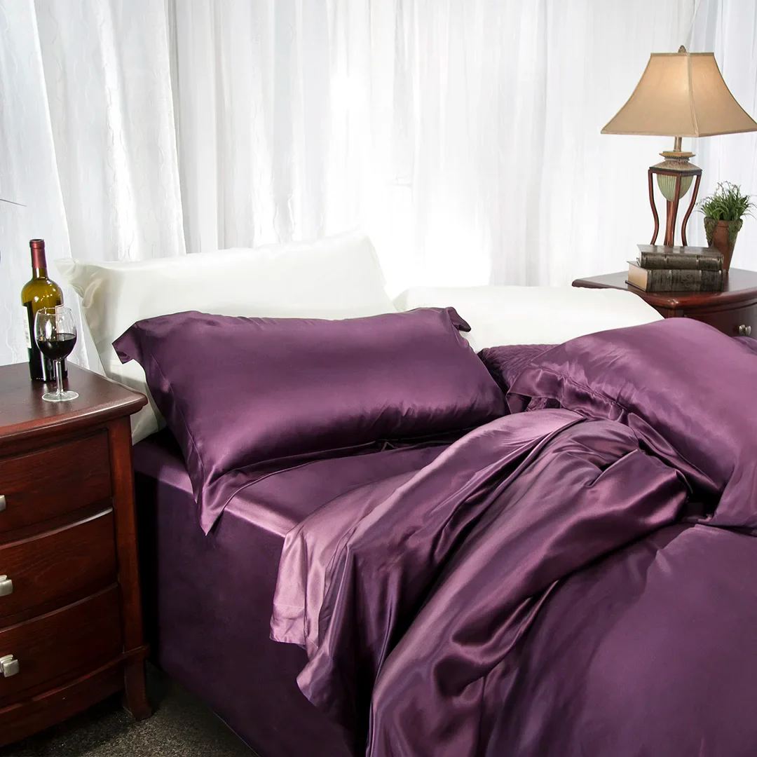 The high quality Aus Vio charmeuse silk features hypoallergenic properties as well. The small areas between the individual silk threads prevent allergens from collecting in the silk sheet, which in turn prevents the allergens from coming in contact with the skin, nose, or eyes.