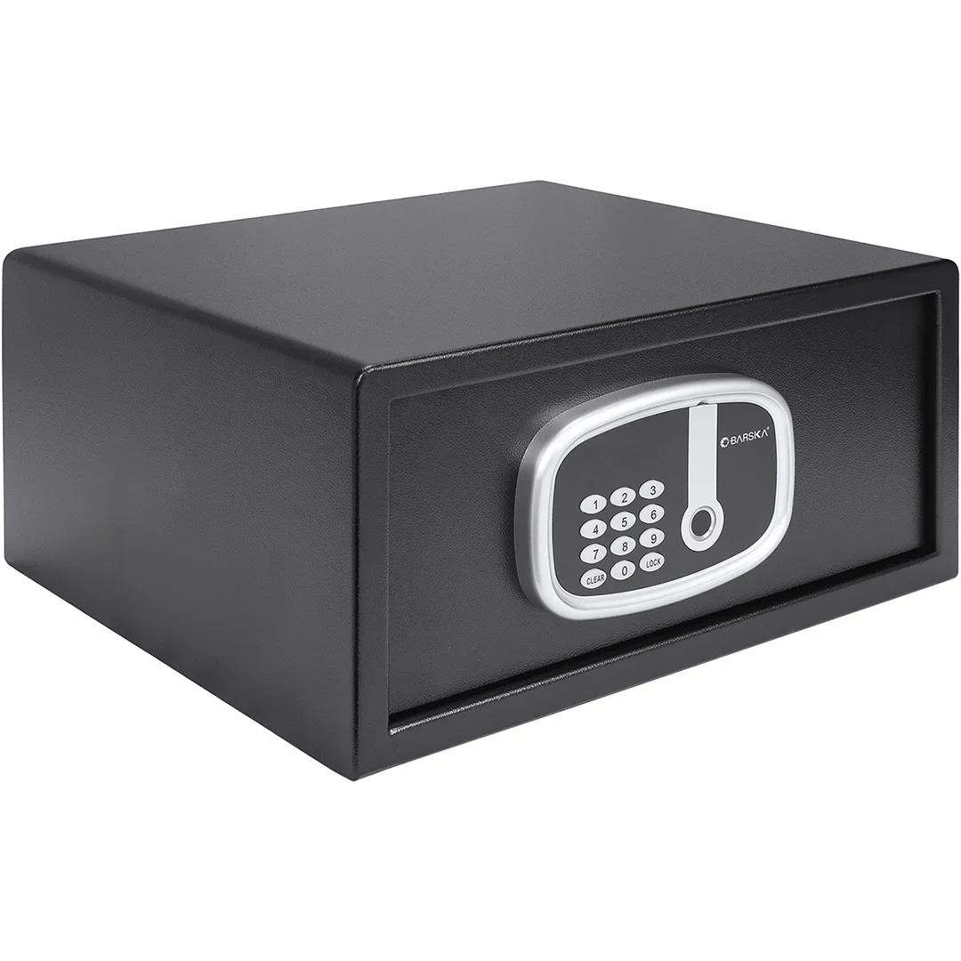 Keep your valuables and belongings safe with the 0.85 Cu. ft Biometric Digital Keypad Security Safe with Interior Light by Barska. The Biometric Digital Keypad Security Safe features an all-new module that combines both a biometric fingerprint scanner and LED illuminated digital keypad. Store up to 20 fingerprints and 1 PIN Code into the memory bank. The advanced biometric identification system will only recognize the fingerprints that have been programmed into the safe, and the PIN Code acts as a backup in case the safe needs to be accessed by someone whose fingerprint has not been registered. The Biometric Digital Keypad Security Safe is the perfect storage solution for small electronics, jewelry, medicines, important documents, and countless other valuables. Comes complete with mounting hardware, a set of 2 back-up keys, protective floor mat, and 4 AA batteries. Built with tamper-resistant edges and 2 motorized locking bolts, the Biometric Digital Keypad Security Safe is designed to deter theft and protect your valuables.